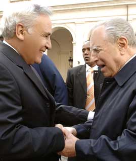Il Presidente Ciampi accoglie all'arrivo il Presidente dello Stato d'Israele Moshe Katsav.