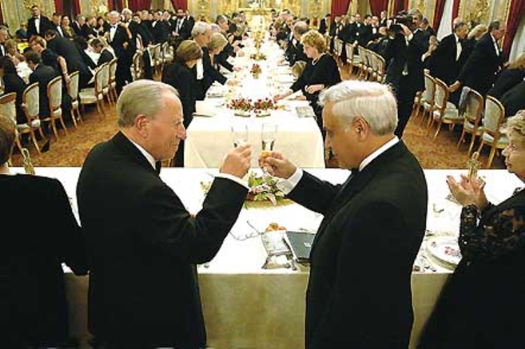 Brindisi tra il Presidente Ciampi e il Presidente dello Stato d'Israele Katsav al pranzo di Stato al Quirinale