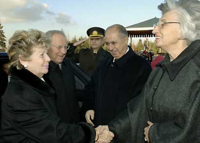 Il Presidente Ciampi e la moglie Franca accolti dal Presidente della Repubblica di Turchia Ahmet Necdet Sezer e dalla moglie Semra, a Palazzo Presidenziale.