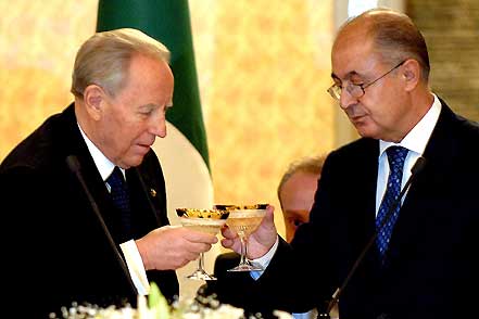 Brindisi tra i due Capi di Stato, Carlo Azeglo Ciampi e Ahmet Necdet Sezer al termine dei discorsi al pranzo ufficiale