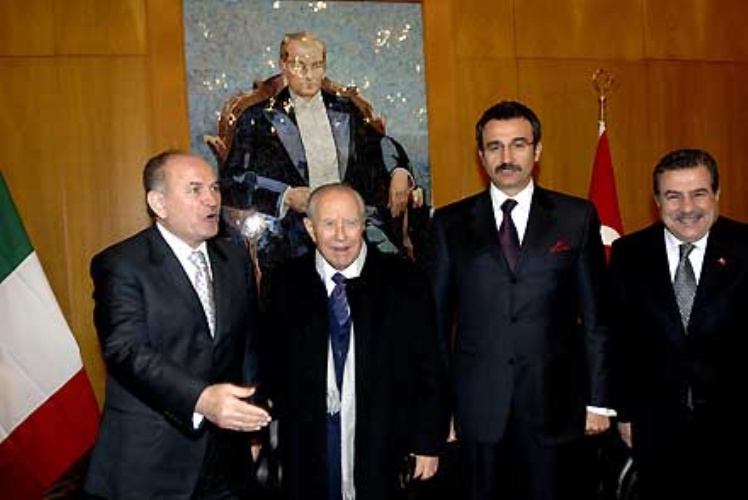 Il Presidente Ciampi al suo arrivo in città. Da sin: il Sindaco Kadir Topbas, il Presidente Ciampi, il Ministro di Stato per il Commercio Estero Kursad Tuzmen ed il Governatore di Istambul Muammer Guler.