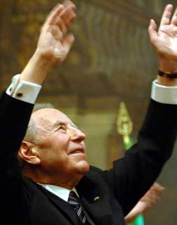 4. Il Presidente Ciampi risponde al saluto dei cittadini al termine del suo intevento al teatro Po...