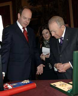 Il Presidente Ciampi con Sua Altezza il Principe Alberto II di Monaco durante lo scambio delle Onorificenze