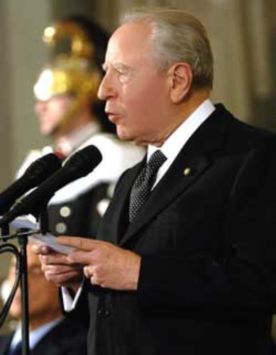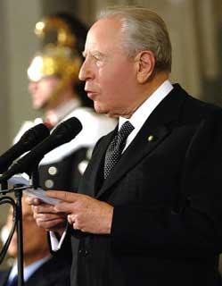 Il Presidente Ciampi durante il suo intervento, in occasione degli auguri di Natale e Capodanno alle Magistrature della Repubblica.