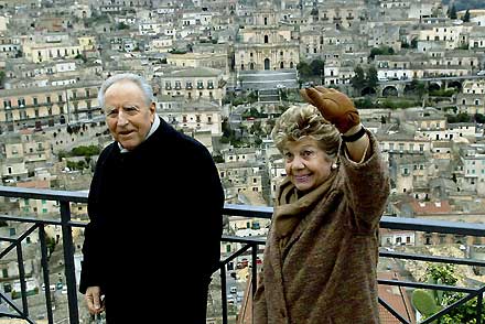 Il Presidente Ciampi con la moglie Franca durante la visita alla cittadina di Modica
