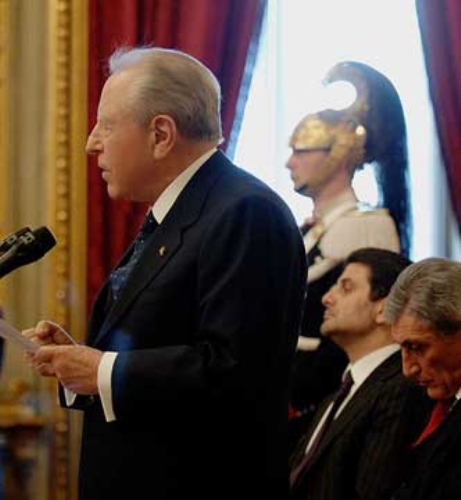 Il Presidente Ciampi rivolge il suo indirizzo di saluto ai Sindaci dei Comuni colpiti dal terremoto del 1980, in occasione della cerimonia di consegna delle Medaglie d'Oro al Marito Civile.