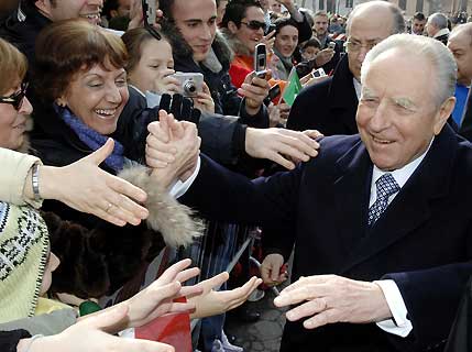 Il Presidente Ciampi al suo arrivo in città, ultima tappa del suo giro nelle province d'Italia.