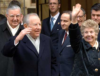 Il Presidente Ciampi in compagnia della moglie Franca e del Segretario Generale del Quirinale Gaetano Gifuni, all'arrivo in Prefettura.