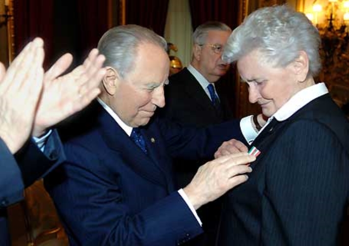 Il Presidente Ciampi consegna la Medaglia d'Oro al Merito Civile alla memoria di Norma Cossetto, alla sorella Licia, in occasione della Giornata Nazionale del Ricordo.