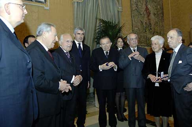 Il Presidente Ciampi, a Montecitorio, insieme ad alcuni Costituenti, in occasione della inaugurazione della Mostra sul tema della "Rinascita del Parlamento-dalla Costituente alla Costituzione".