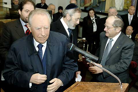 Il Presidente Ciampi, nella foto con Riccardo Di Segni, Rabbino Capo di Roma e Leone Paserman, Presidente della Comunità Ebraica di Roma, durante la visita in forma privata al rinnovato Museo Ebraico
