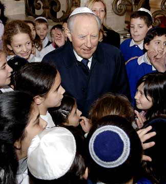 Il Presidente Ciampi tra i bambini della Comunità Ebraica di Roma, in occasione della visita in forma privata al Museo Ebraico ed al Tempio Maggiore di Roma