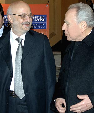 Il Presidente Ciampi con il Presidente dell'ANM Ciro Riviezzo all'apertura del XXXIII Congresso al cinema Capranica