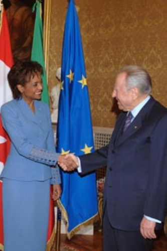 Il Presidente Ciampi con la Signora Michaelle Jean, Governatore del Canada, al Quirinale
