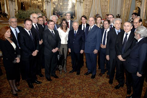 Il Presidente Ciampi con i promotori ed i vincitori della XXVI edizione del "Premio Ischia Internazionale di Giornalismo"