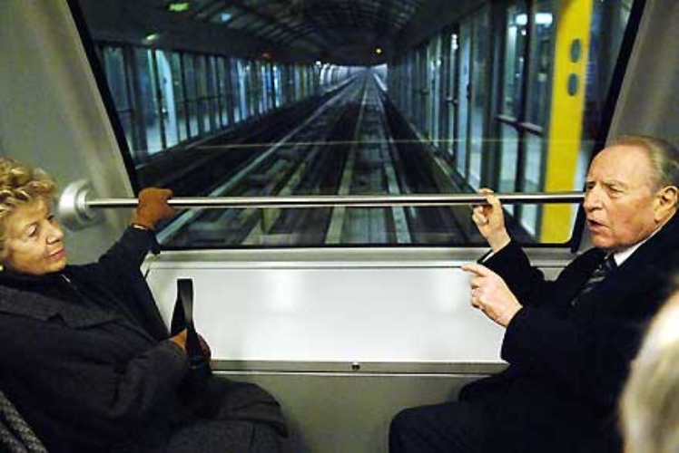 Il Presidente Ciampi con la moglie Franca durante il trasferimento in metropolitana.
