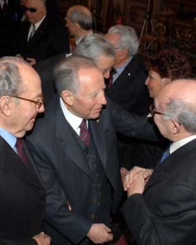 Il Presidente Ciampi, con a fianco il Cav. Gr. Croce Gerardo Agostini, Presidente della Confederazione Italiana fra le Associazioni combattentistiche e Partigiane, rivolge il suo indirizzo di saluto nel corso dell'incontro con i Presidenti delle Associazioni aderenti al sodalizio.