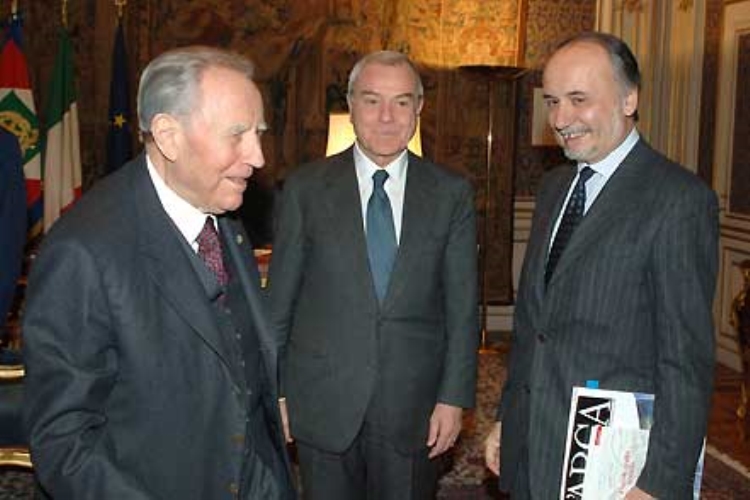Il Presidente Ciampi, con il Dott. Gianni Letta, Sottosegretario di Stato alla Presidenza del Consiglio dei Ministri e l'Arch. Mario Virano, Presidente dell'Osservatorio sulla TAV Torino - Lione