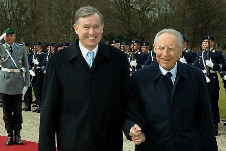 I Presidenti della Repubblica d'Italia e Germania, Horst Kohler e Carlo Azeglio Ciampi a Schloss Bellevue durante la cerimonia di accoglienza