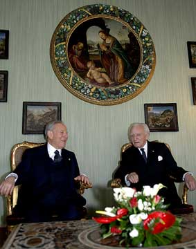 Il Presidente Ciampi a colloquio con Frà Andrew Bertie, Sovano Militare dell'Ordine di Malta, in occasione della visita ufficiale a Palazzo Magistrale.