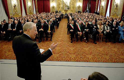 Il Presidente Ciampi rivolge il suo indirizzo di saluto agli esponenti della Confederazione Nazionale dell'Artigianato e della Piccola e Media Impresa, della Confartigianato e dell'Associazione Italiana Città della Ceramica.