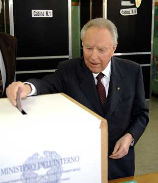 Il Presidente Ciampi mentre vota nel suo seggio elettorale.