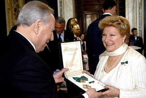 Il Presidente Ciampi consegna le insegne di Grande Ufficiale dell'OMRI a Valeria Valeri, in occasione della cerimonia dell'incontro con i candidati ai Premi David di Donatello 2006.