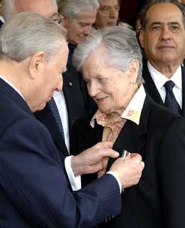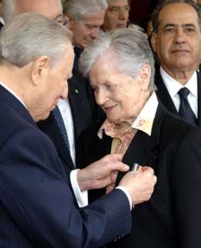 Il Presidente Ciampi consegna la Medaglia d'Oro al Merito Civile alla Moglie di Gino Bartali, alla Memoria del popolare Campione di ciclismo