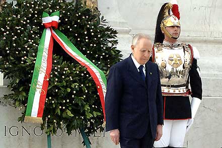 Il Presidente Ciampi all'Altare della Patria, rende omaggio al Milite Ignoto in occasione del 61°anniversario della Liberazione