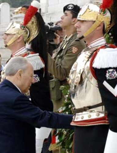Il Presidente Ciampi, all'Altare della Patria, rende omaggio al Milite Ignoto in occasione del 61°anniversario della Liberazione