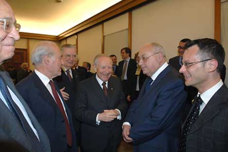 Il Presidente Ciampi, alla fine della seduta del Consiglio Superiore della Magistratura per l'elezione del nuovo Procuratore Generale presso la Corte Suprema di Cassazione si intrattiene con alcuni componenti del Consiglio