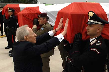 Il Presidente Ciampi accoglie le salme dei caduti a Nassiriya all'Aeroporto di Ciampino