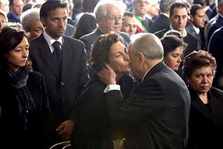 Il Presidente Ciampi, ai funerali dei nostri militari uccisi a Nassiriya, abbraccia la mamma del Capitano Nicola Ciardelli