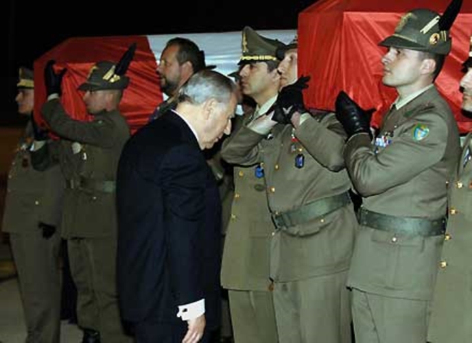 Il Presidente Ciampi in raccoglimento davanti alle Salme.