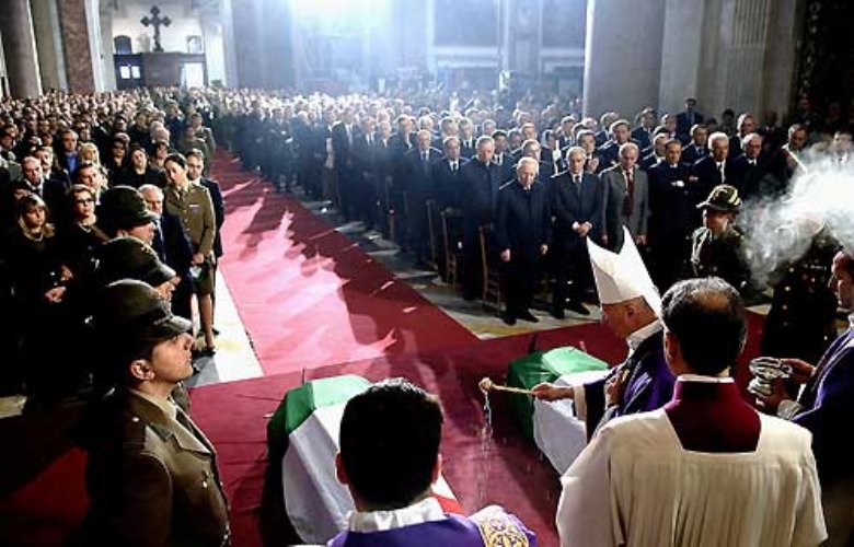 Un momento della Santa Messa, la solenne benedizione delle salme di Manuel Fiorito e Luca Polsinelli, nella Basilica di Santa Maria degli Angeli, presenti i familiari, il Presidente Ciampi e le più Alte cariche dello Stato, Civili e Militari.