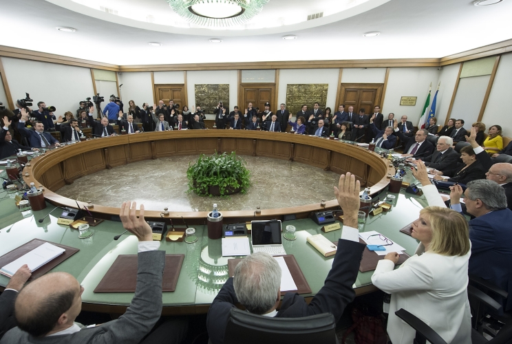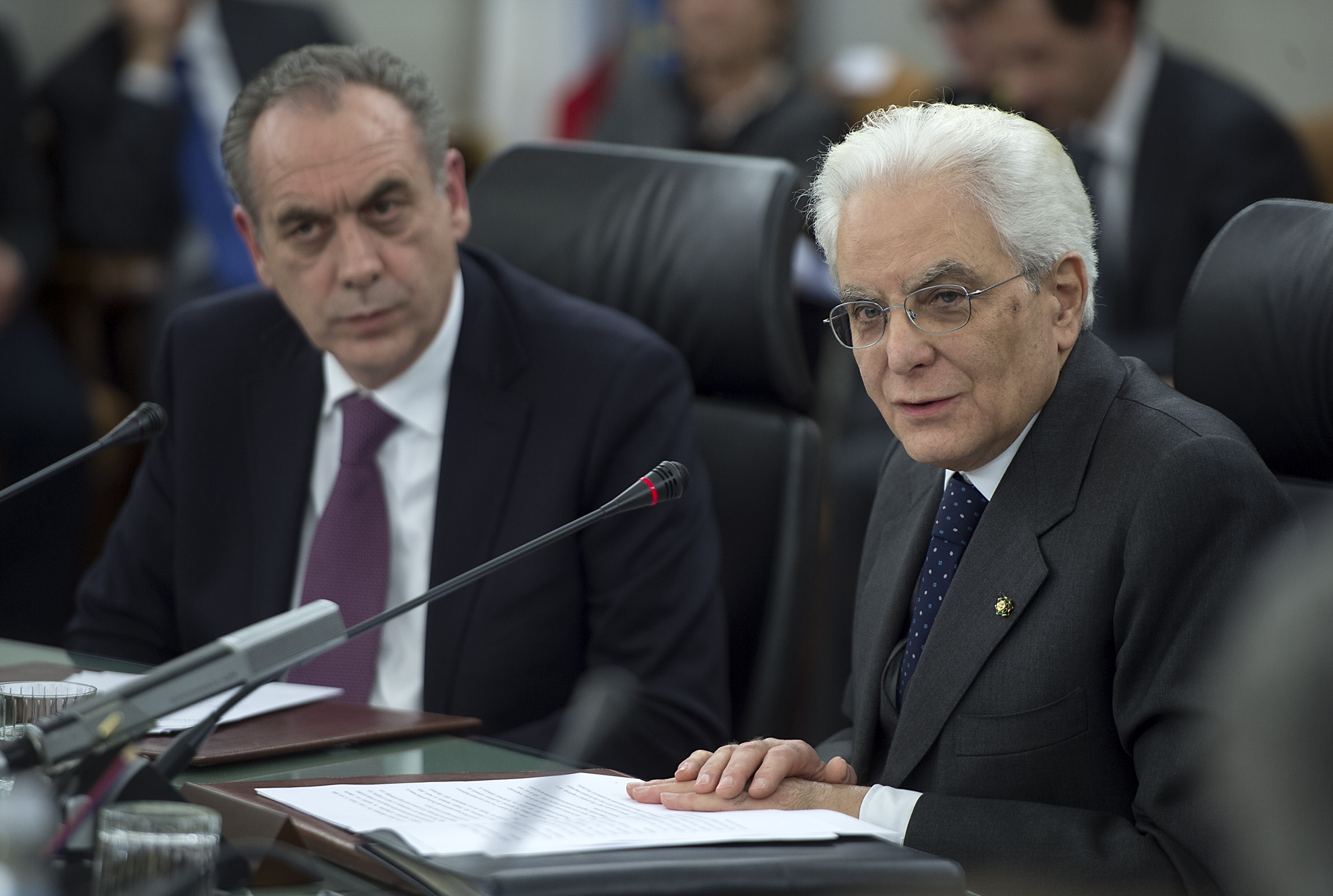 Il Presidente Sergio Mattarella con a fianco il Vice Presidente del CSM Giovanni Legnini, nel corso dell'Assemblea Plenaria del CSM per la nomina del Procuratore Generale della Cassazione, Pasquale Ciccolo