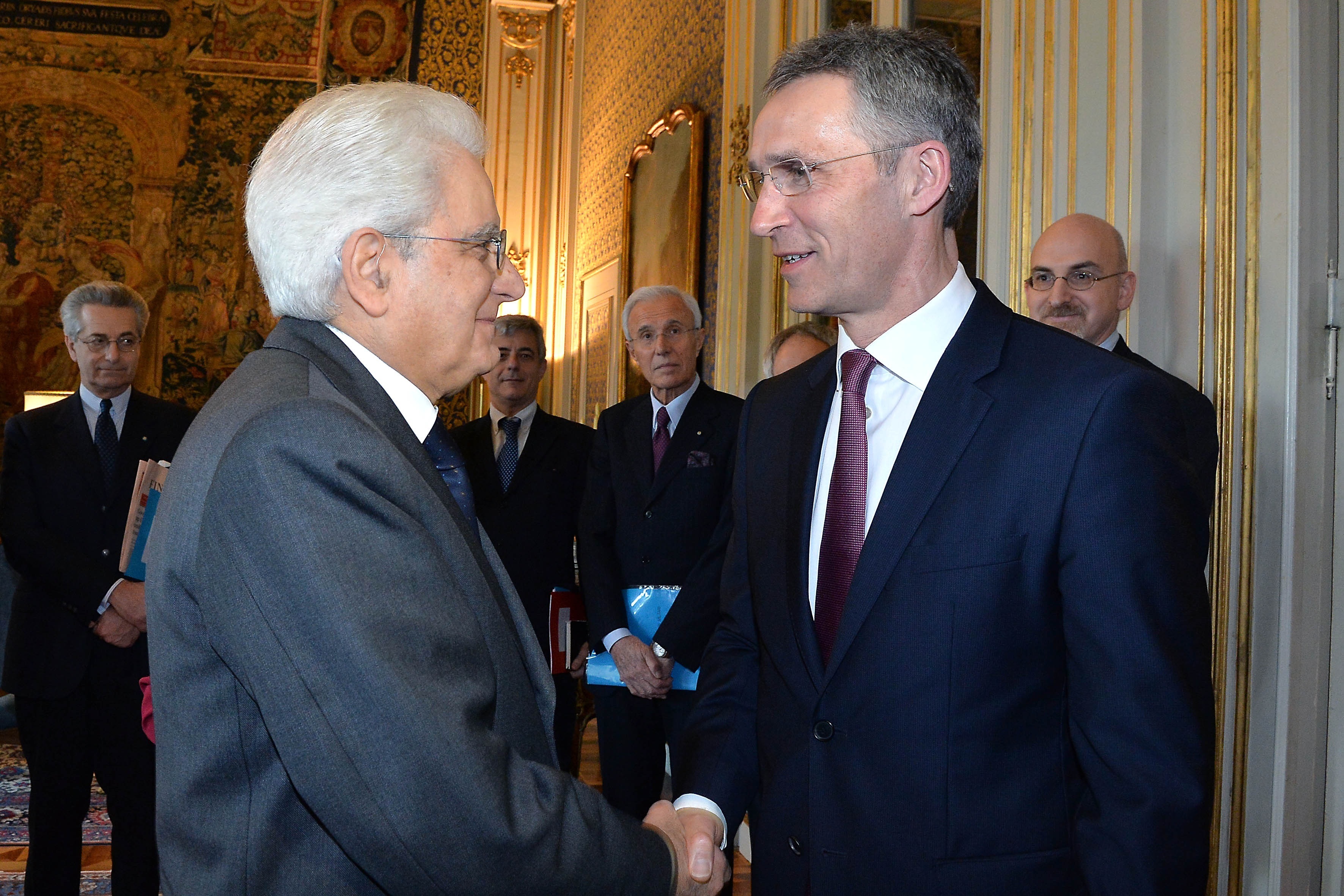 Il Presidente Sergio Mattarella con il Sig. Jens Stoltenberg, Segretario Generale della N.A.T.O., durante i colloqui