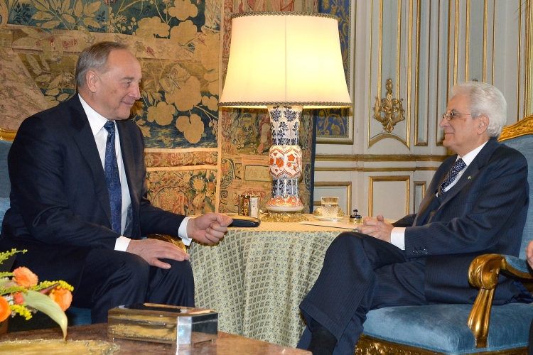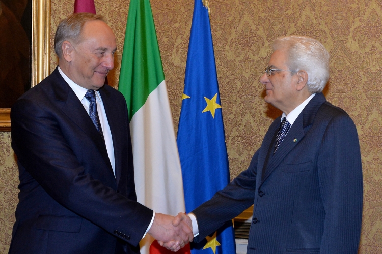Il Presidente della Repubblica Sergio Mattarella con Andris Bērziņš, Presidente della Repubblica di Lettonia durante i colloqui