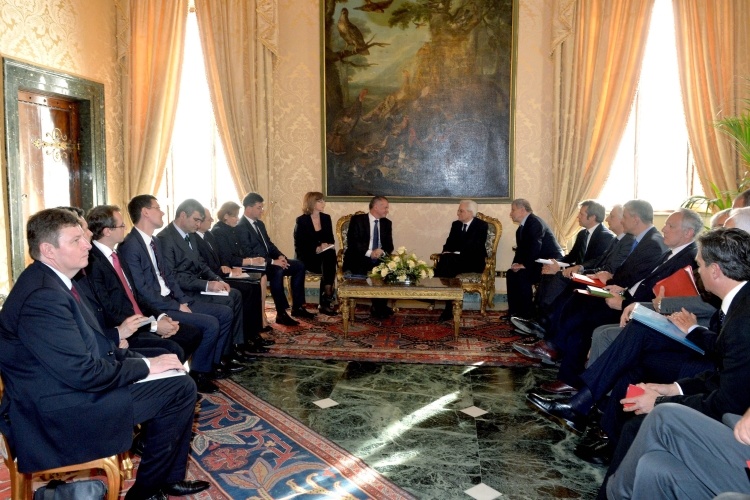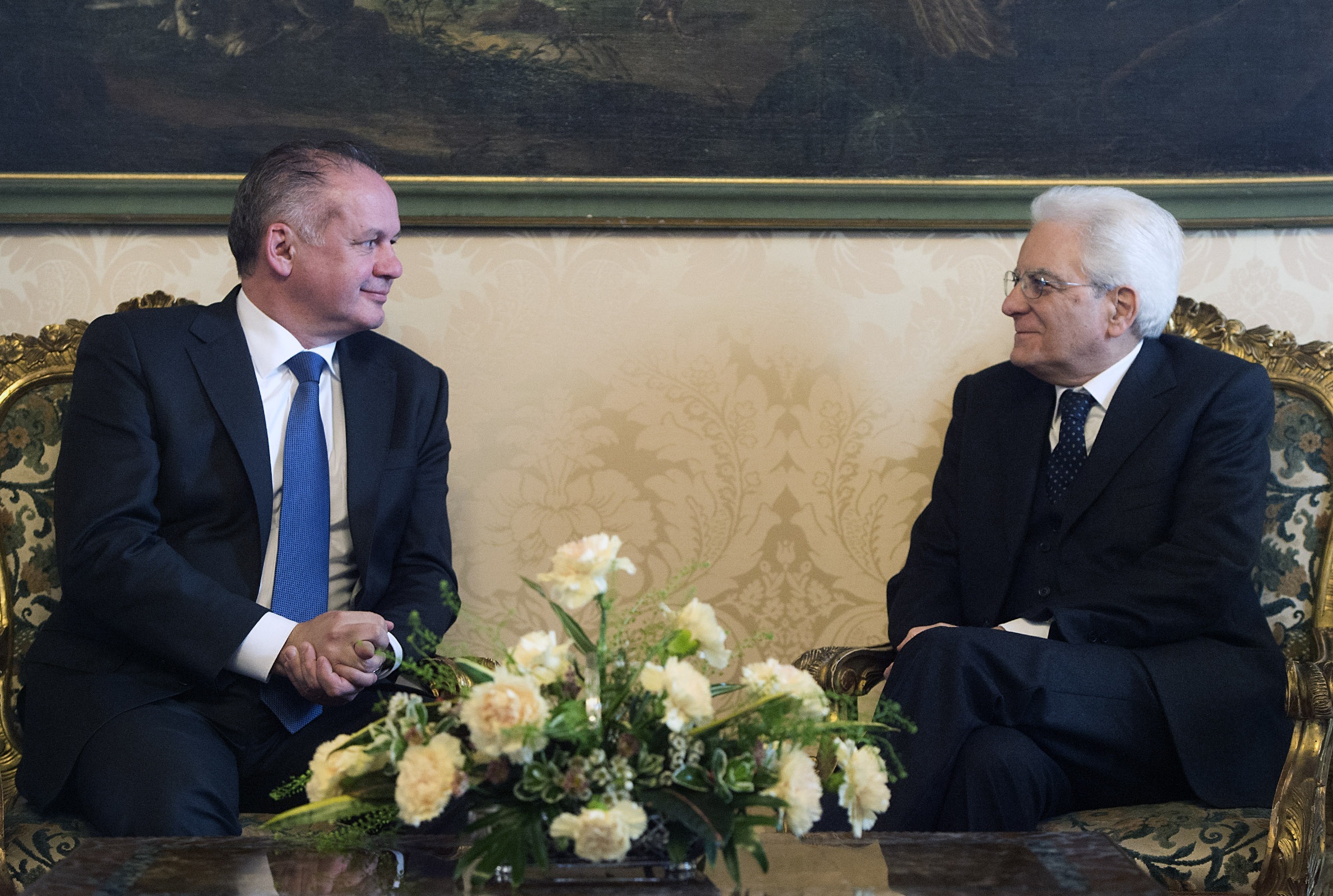 Il Presidente Sergio Mattarella nel corso dei colloqui con Andrej Kiska, Presidente della Repubblica Slovacca