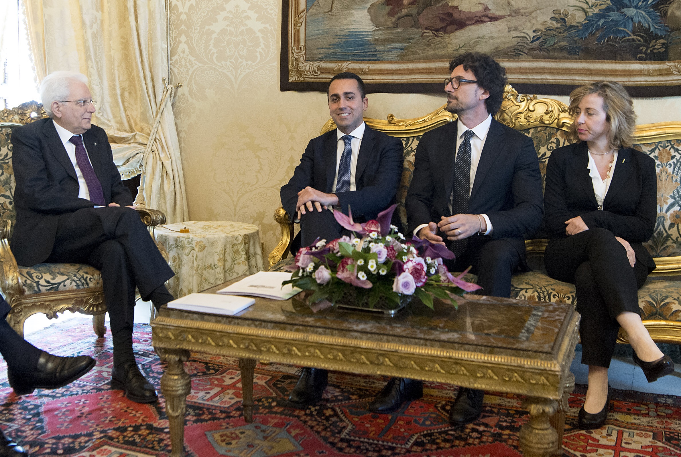 Il Presidente Sergio Mattarella con la delegazione del "Movimento 5 Stelle" in occasione delle consultazioni