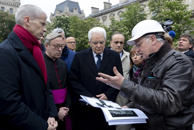 Il Presidente della Repubblica Sergio Mattarella nel corso della visita a Notre Dame