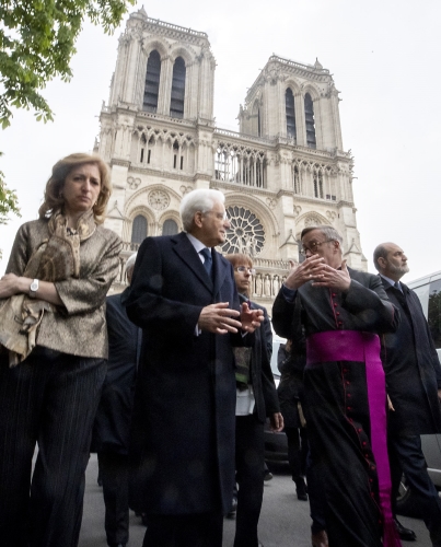 Il Presidente della Repubblica Sergio Mattarella nel corso della visita alla cattedrale di Notre- Dame