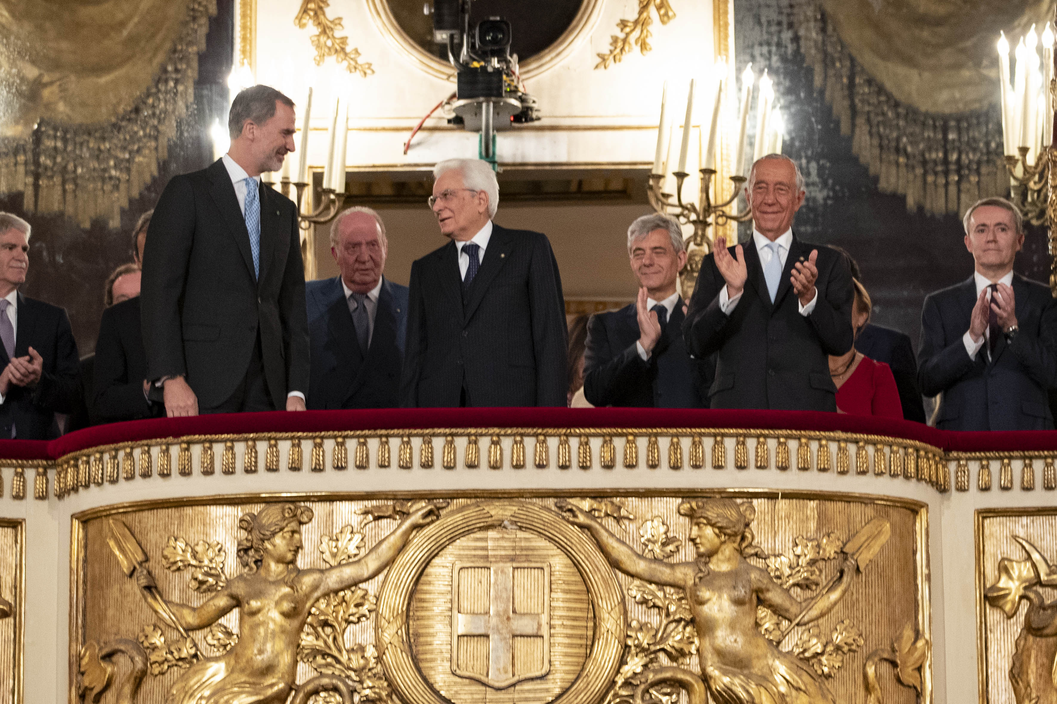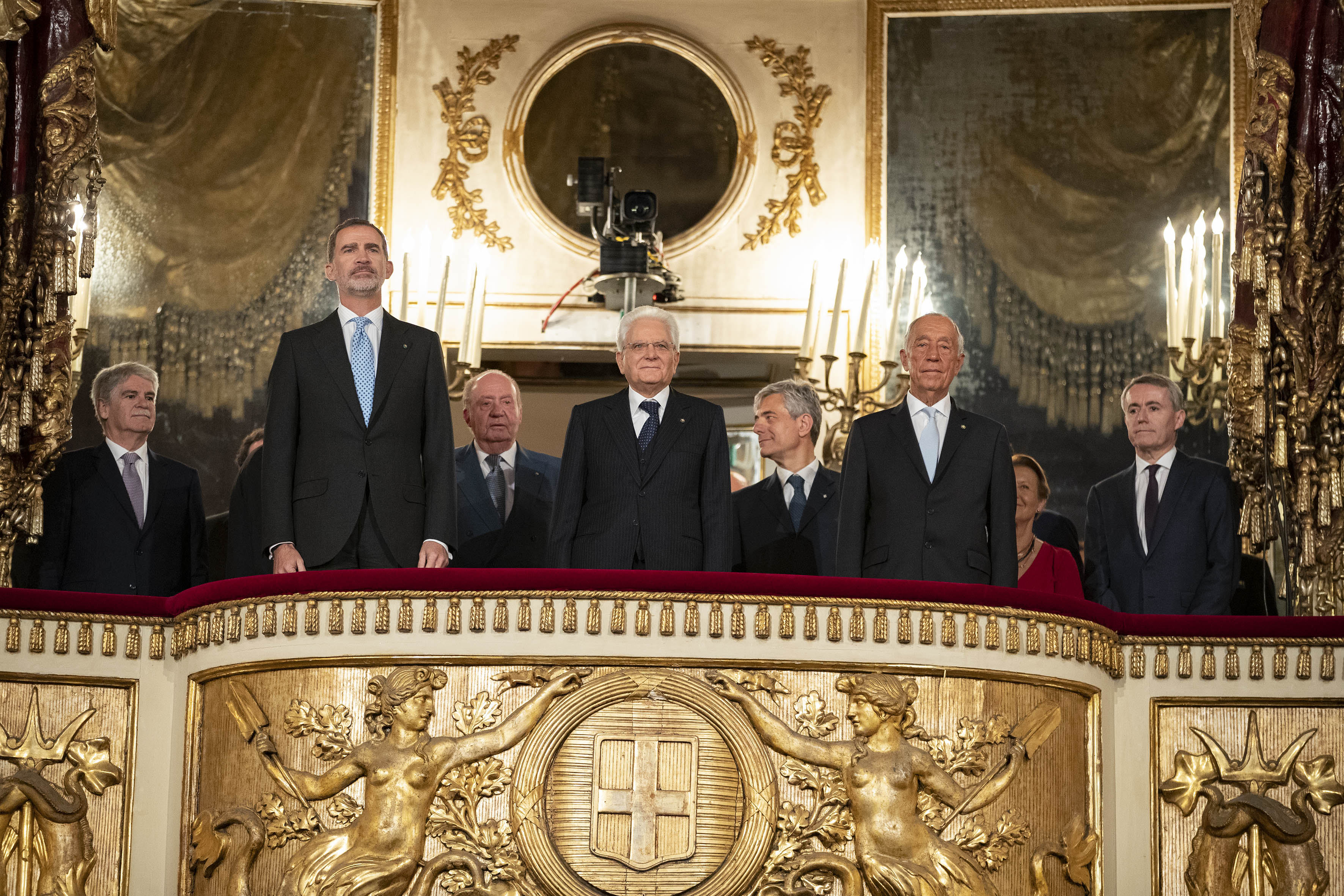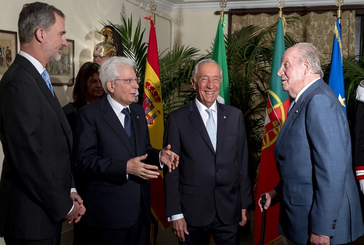 Il Presidente Sergio Mattarella con il Presidente della Repubblica portoghese Marcelo Rebelo de Sousa, il Re di Spagna Felipe VI, il Re emerito di Spagna Juan Carlos, in occasione del XIII Simposio COTEC