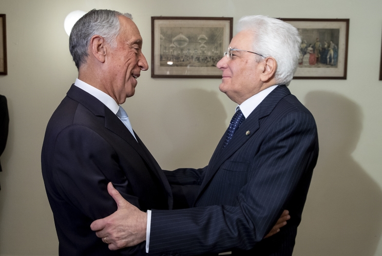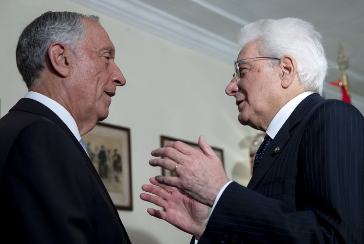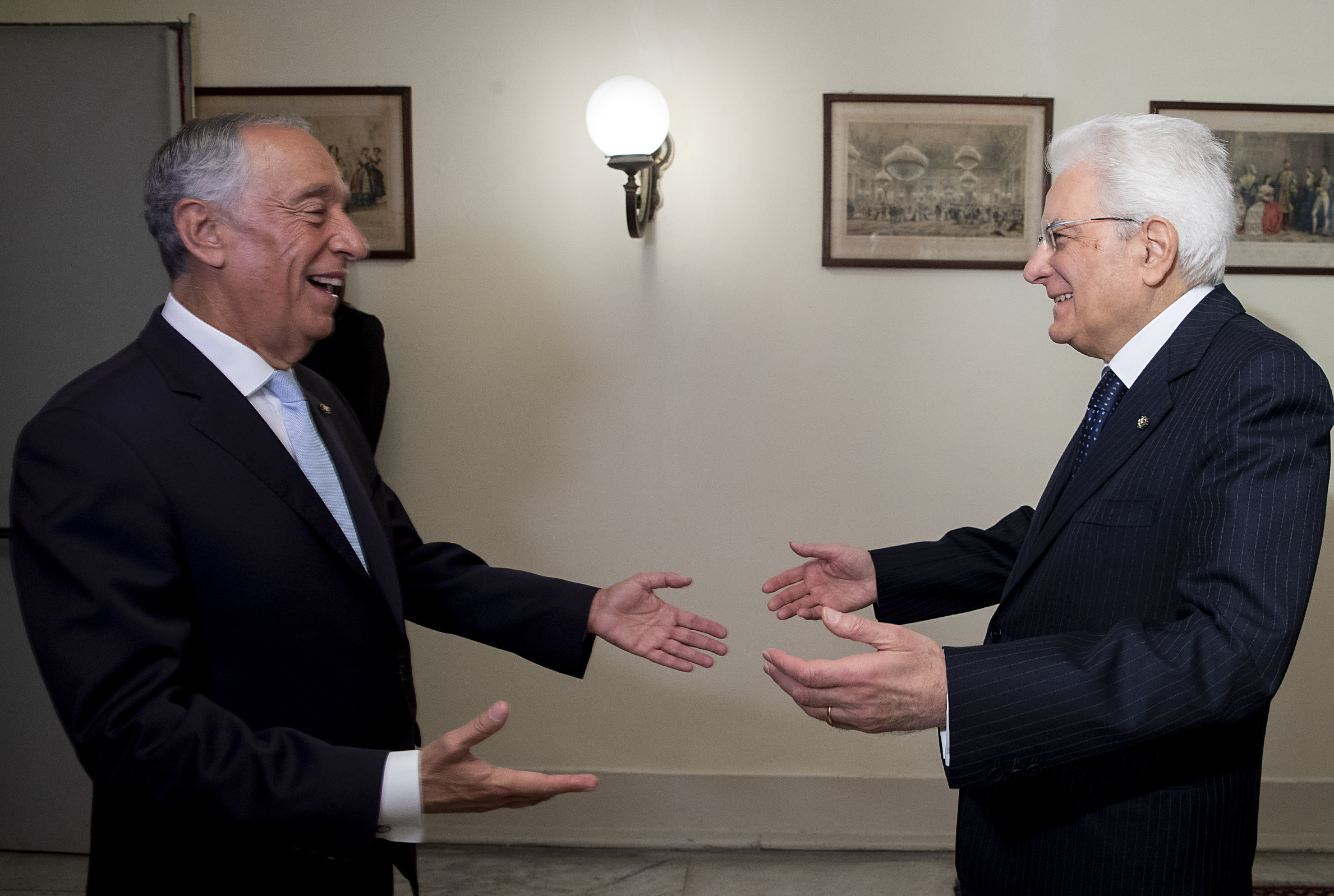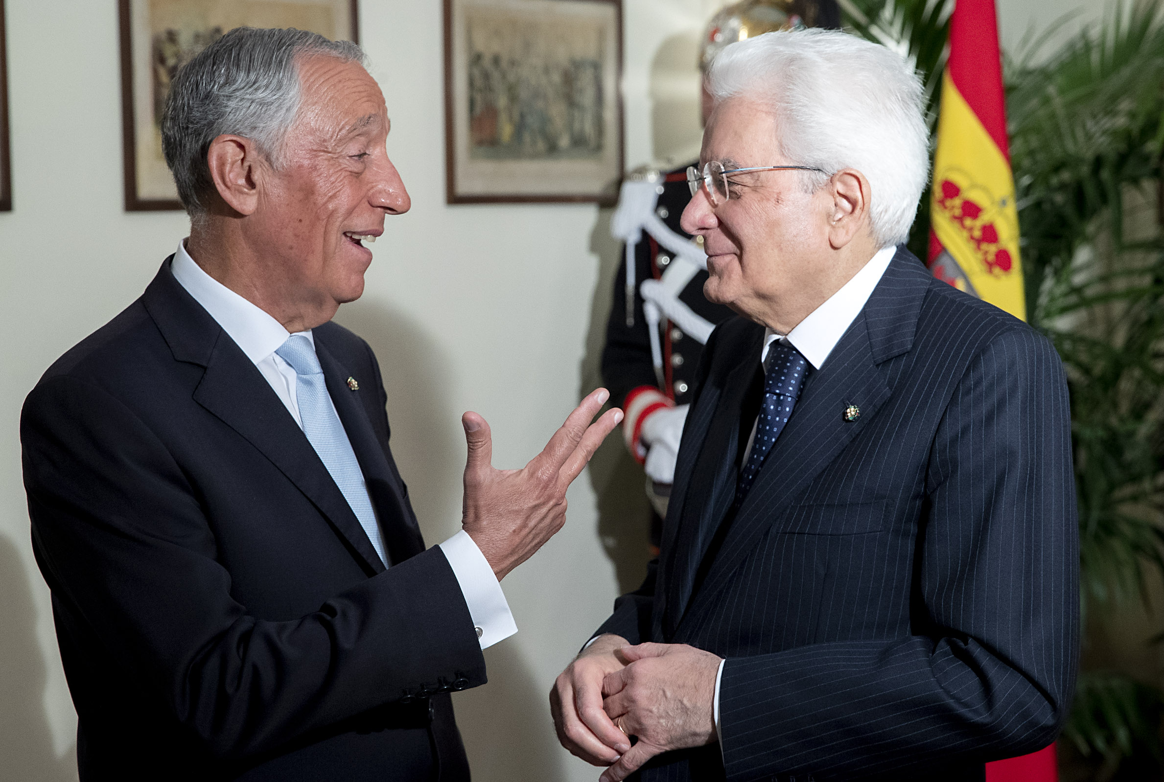 Il Presidente Sergio Mattarella con il Presidente della Repubblica portoghese Marcelo Rebelo de Sousa in occasione del XIII Simposio COTEC