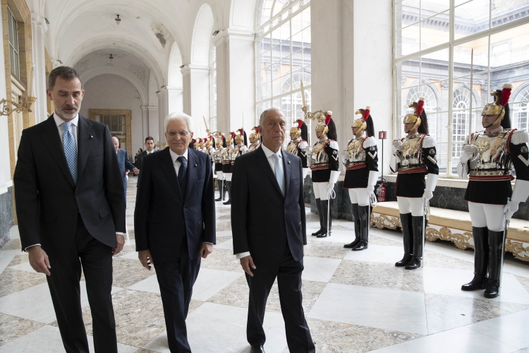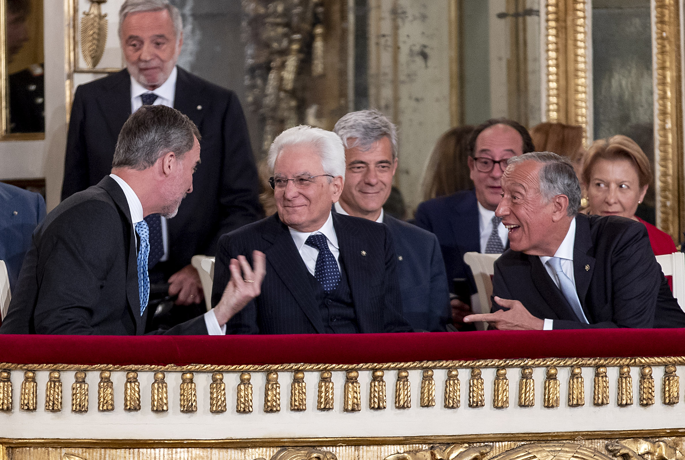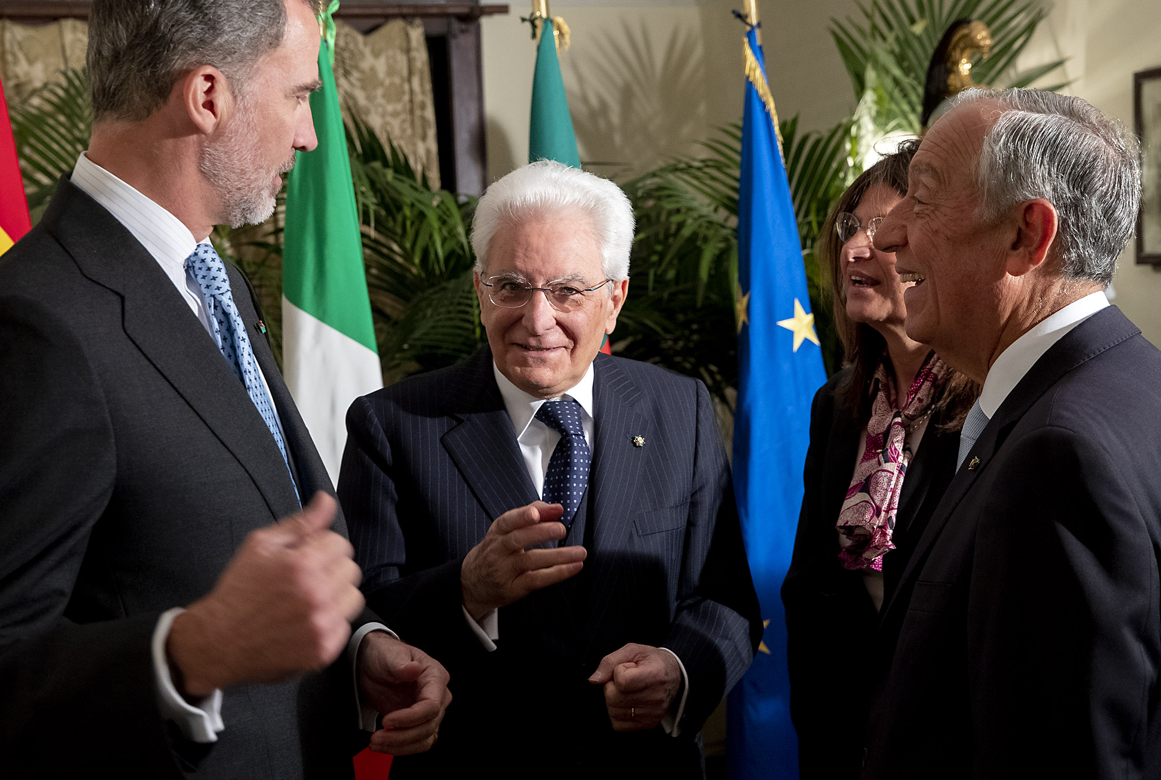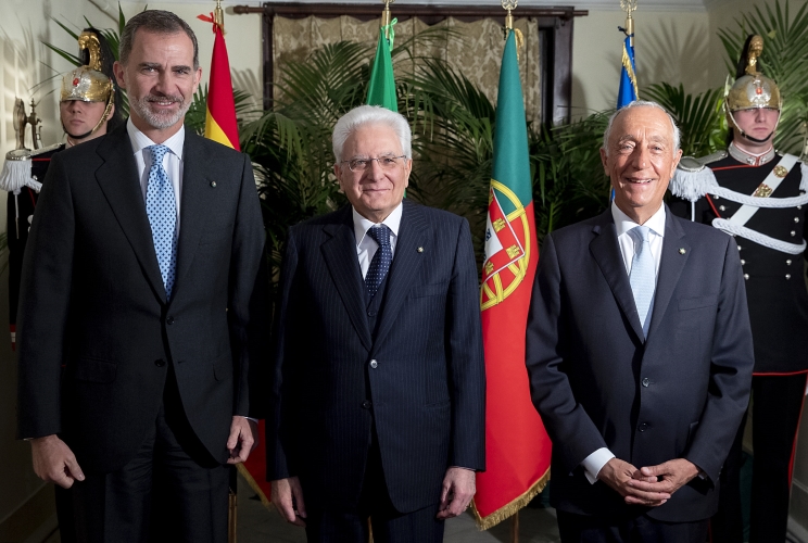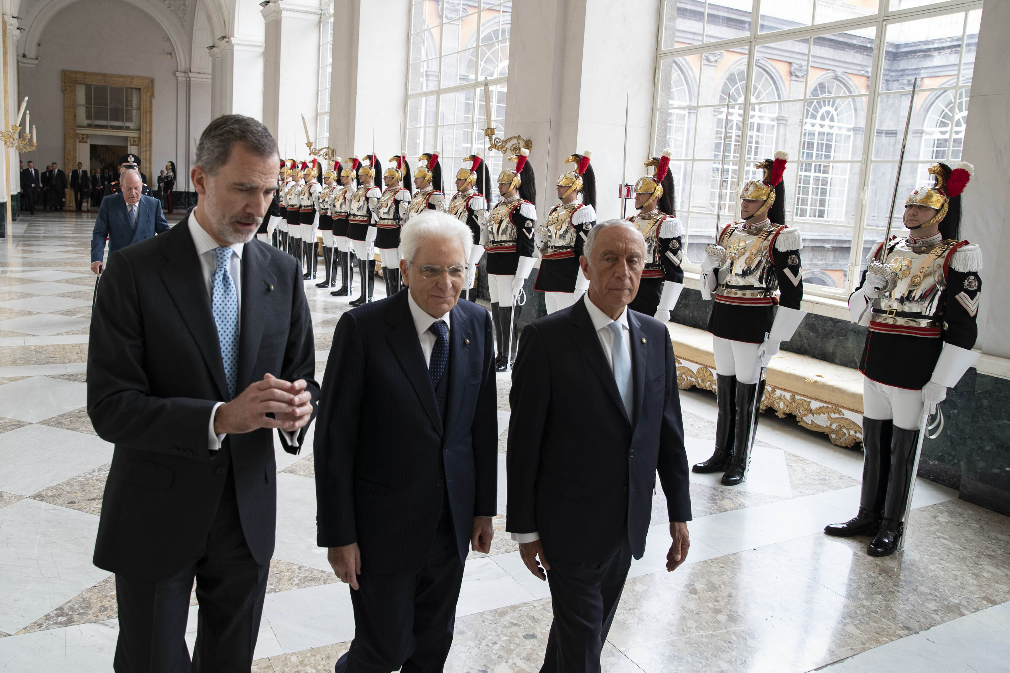 Il Presidente della Repubblica Sergio Mattarella con il Presidente della Repubblica portoghese Marcelo Rebelo de Sousa e Felipe VI Re di Spagna, al Palazzo Reale