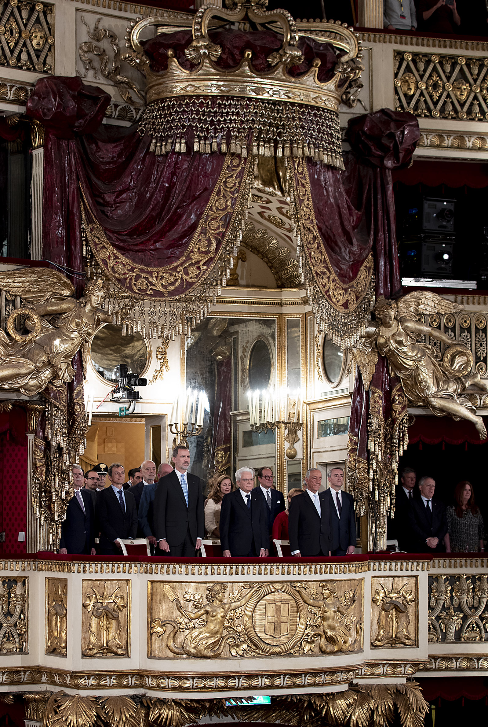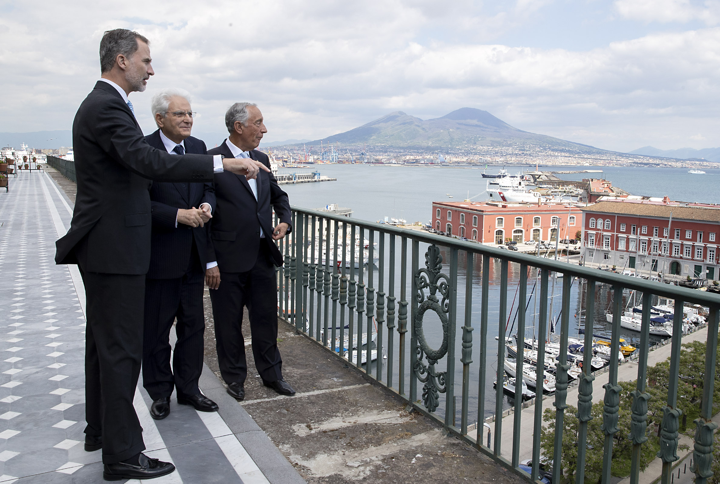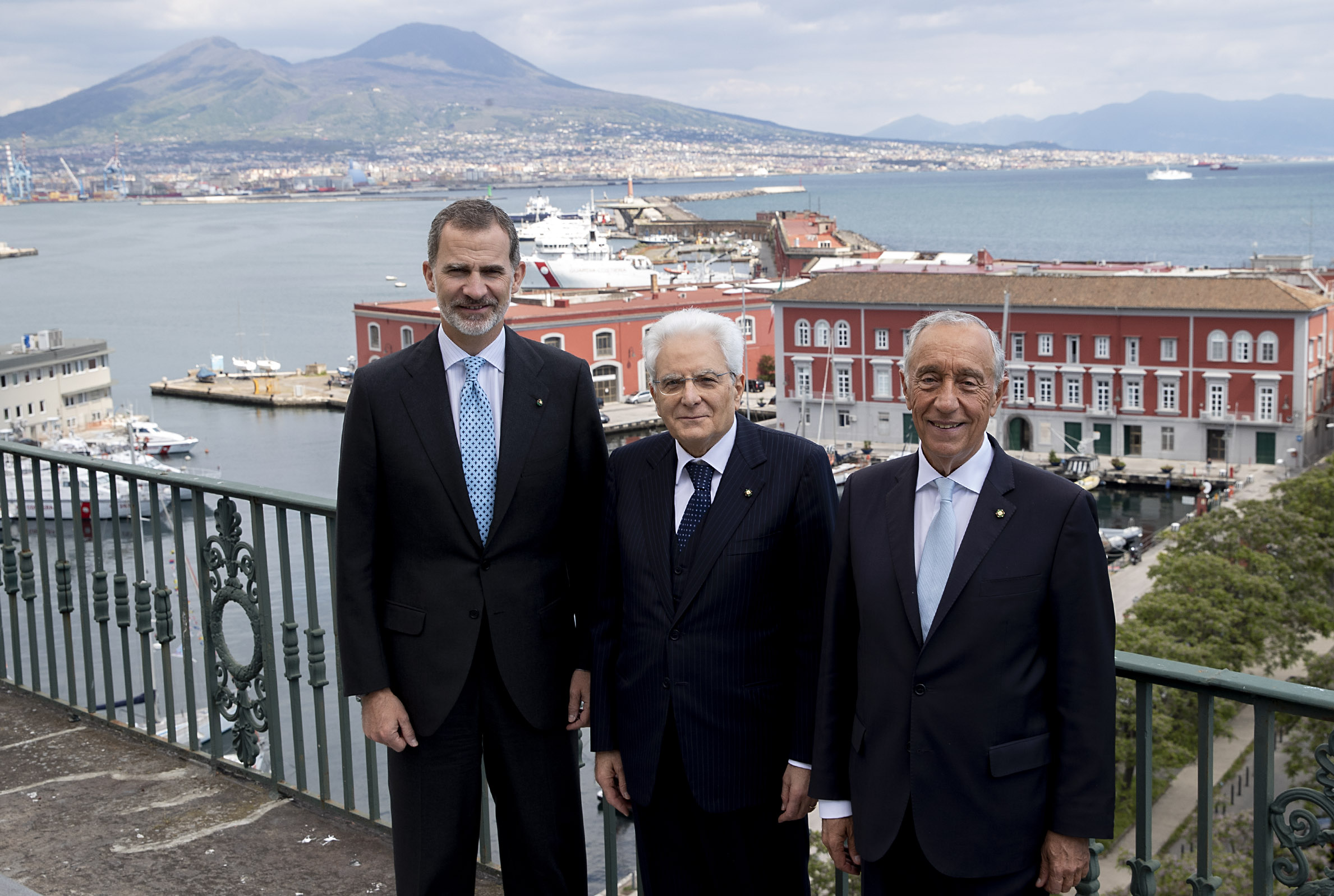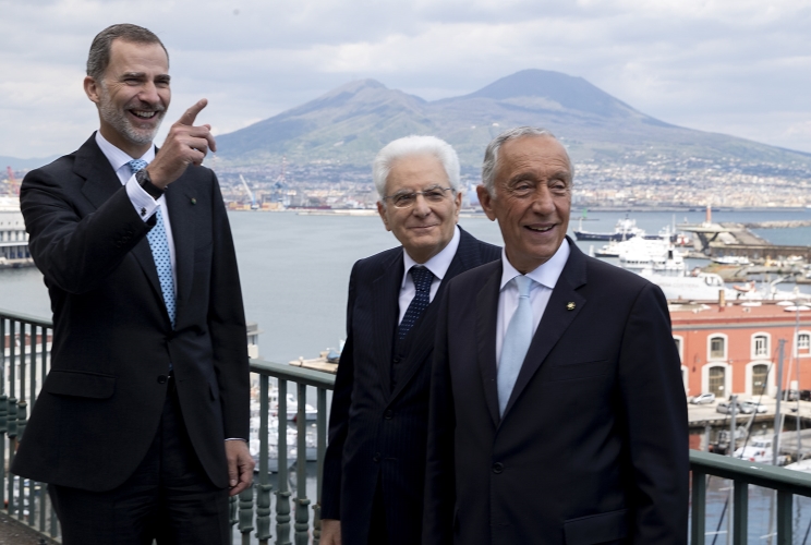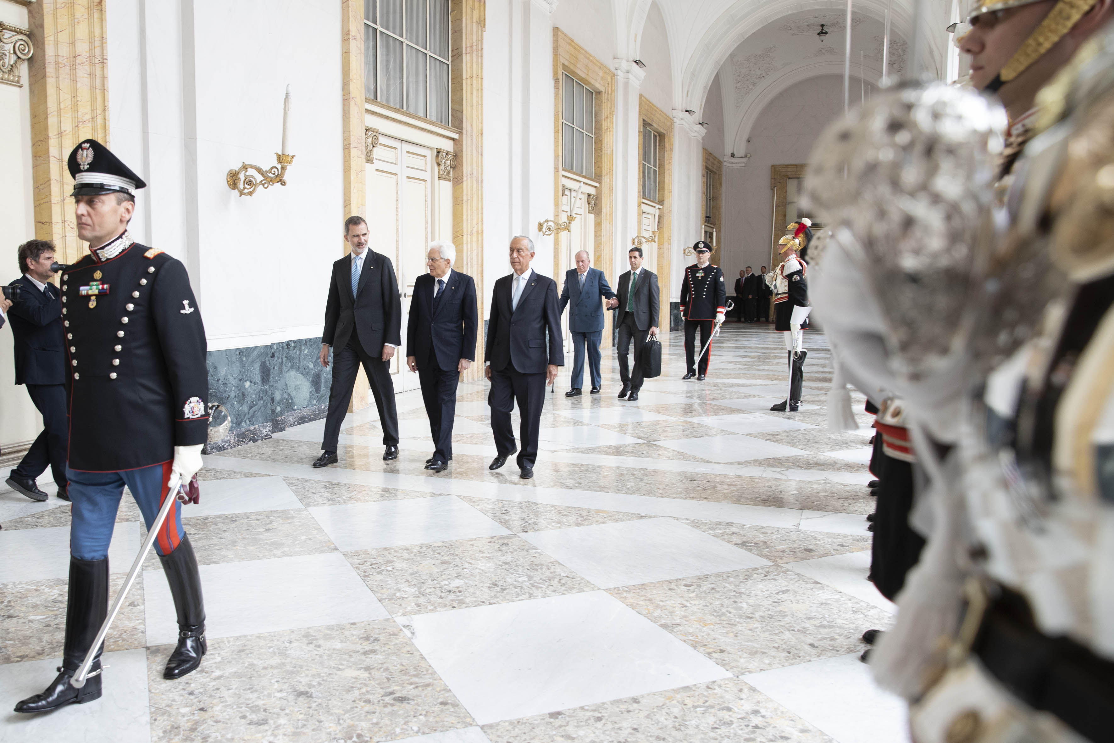 Il Presidente della Repubblica Sergio Mattarella con il Presidente della Repubblica portoghese Marcelo Rebelo de Sousa e Felipe VI Re di Spagna, al Palazzo Reale