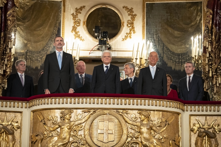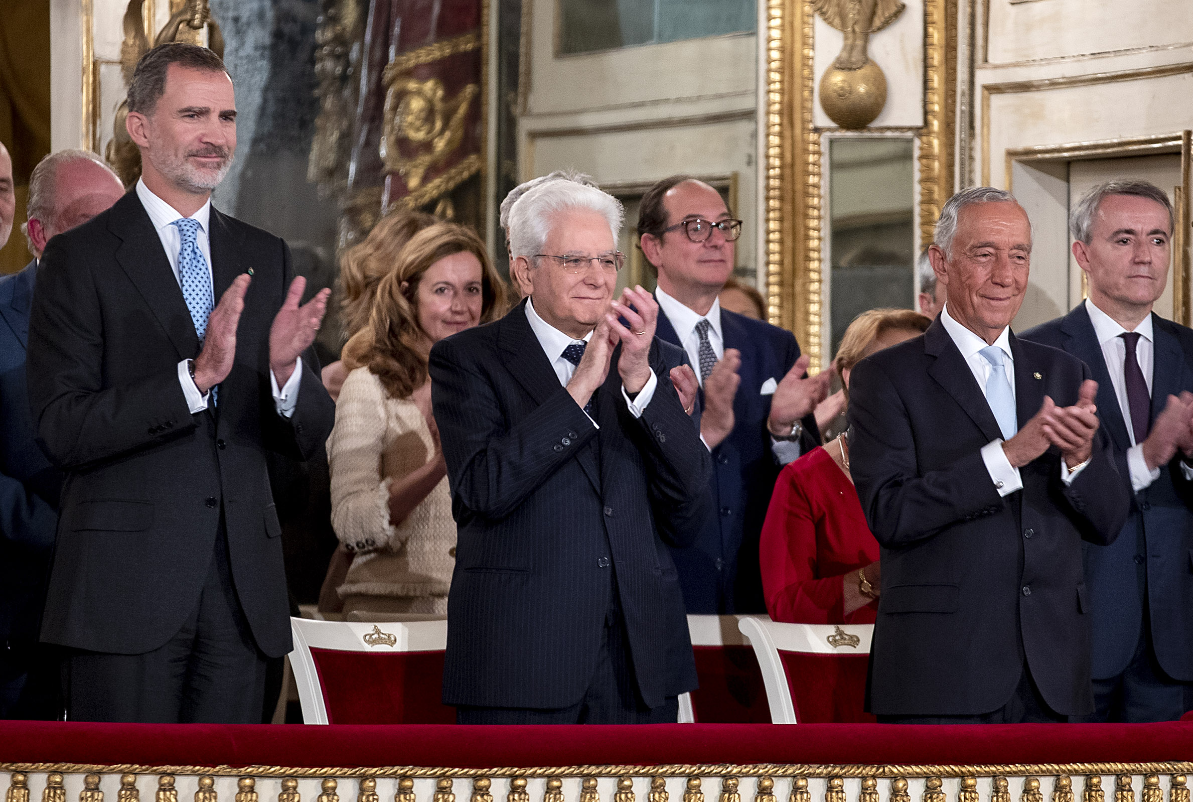 Il Presidente della Repubblica Sergio Mattarella a Palazzo Reale con Felipe VI, Re di Spagna e Marcelo Rebelo de Sousa, Presidente della Repubblica portoghese, in occasione del XIII Simposio COTEC