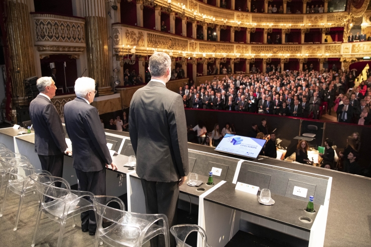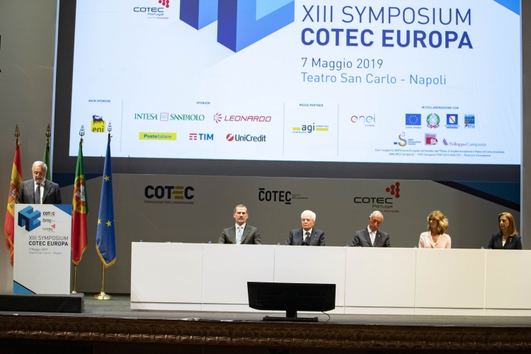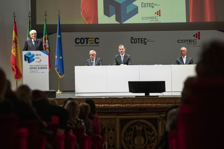 Il Presidente Sergio Mattarella con il Presidente della Repubblica portoghese Marcelo Rebelo de Sousa e il Re di Spagna Felipe VI in occasione del XIII Simposio COTEC