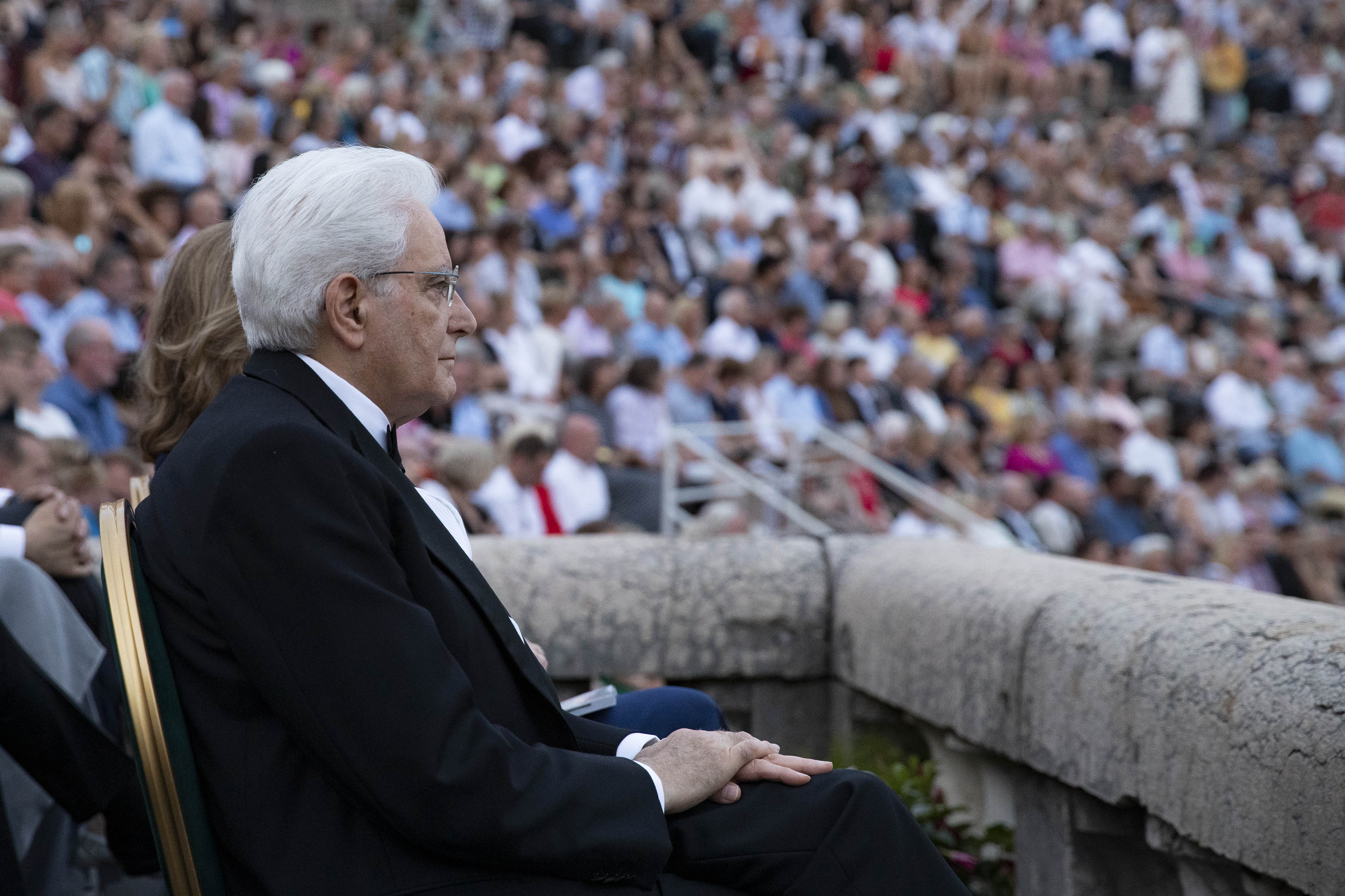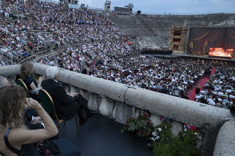Il Presidente Sergio Mattarella e la Sig.ra Laura, alla rappresentazione dell’opera “La Traviata” di Giuseppe Verdi, diretta dal M° Daniel Oren, in occasione dell’inaugurazione del 97^ Festival lirico della Fondazione Arena di Verona