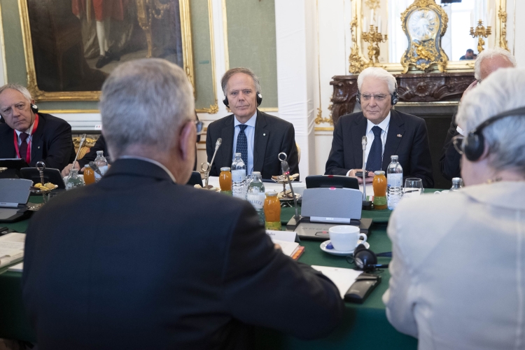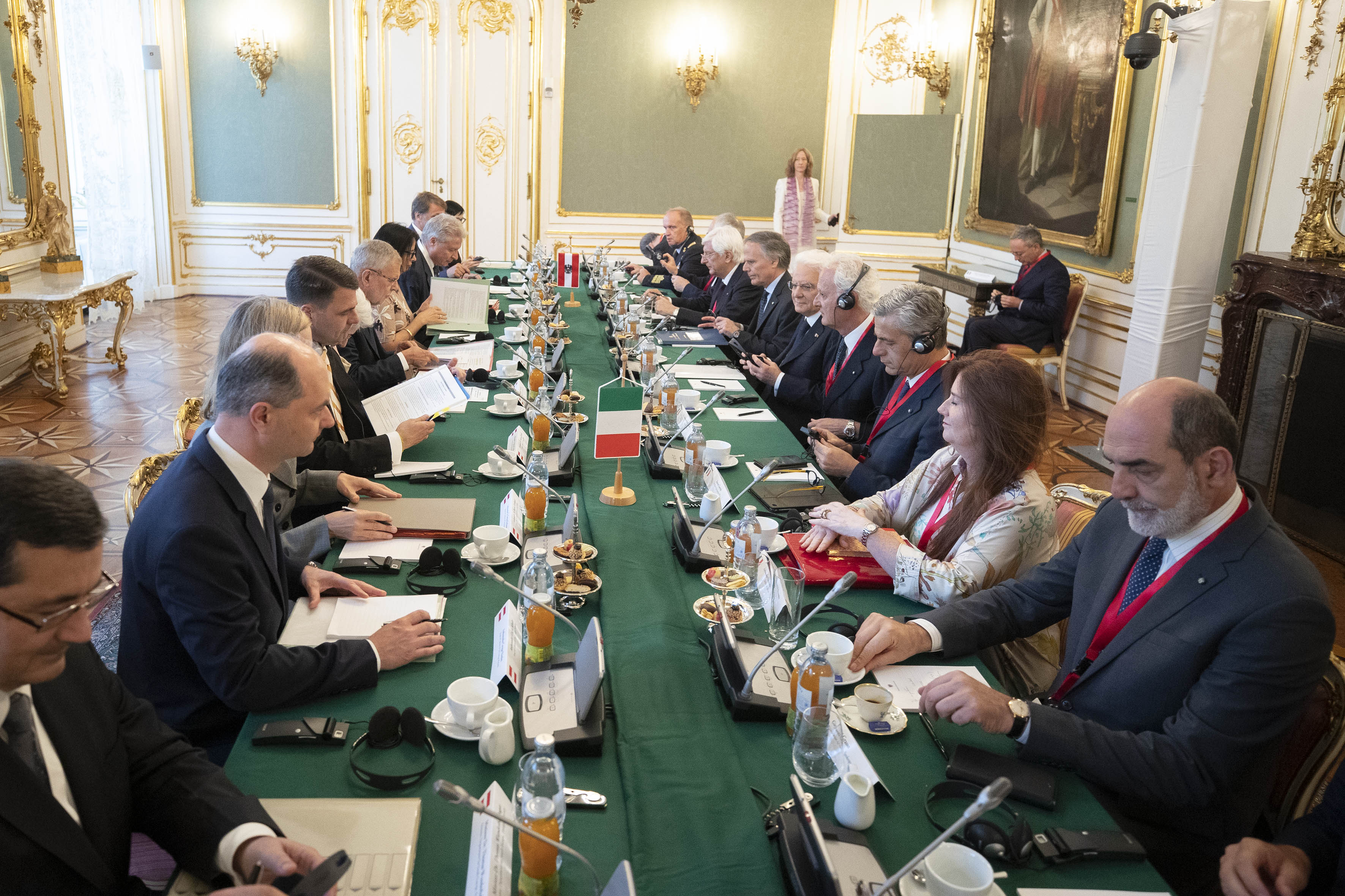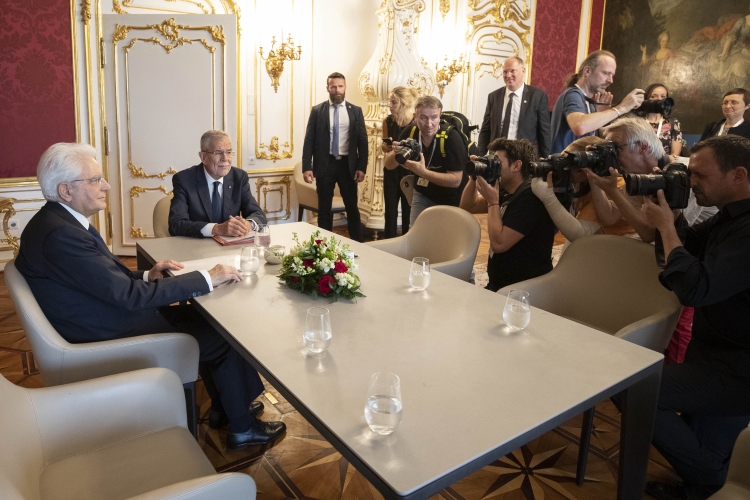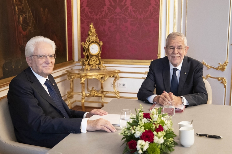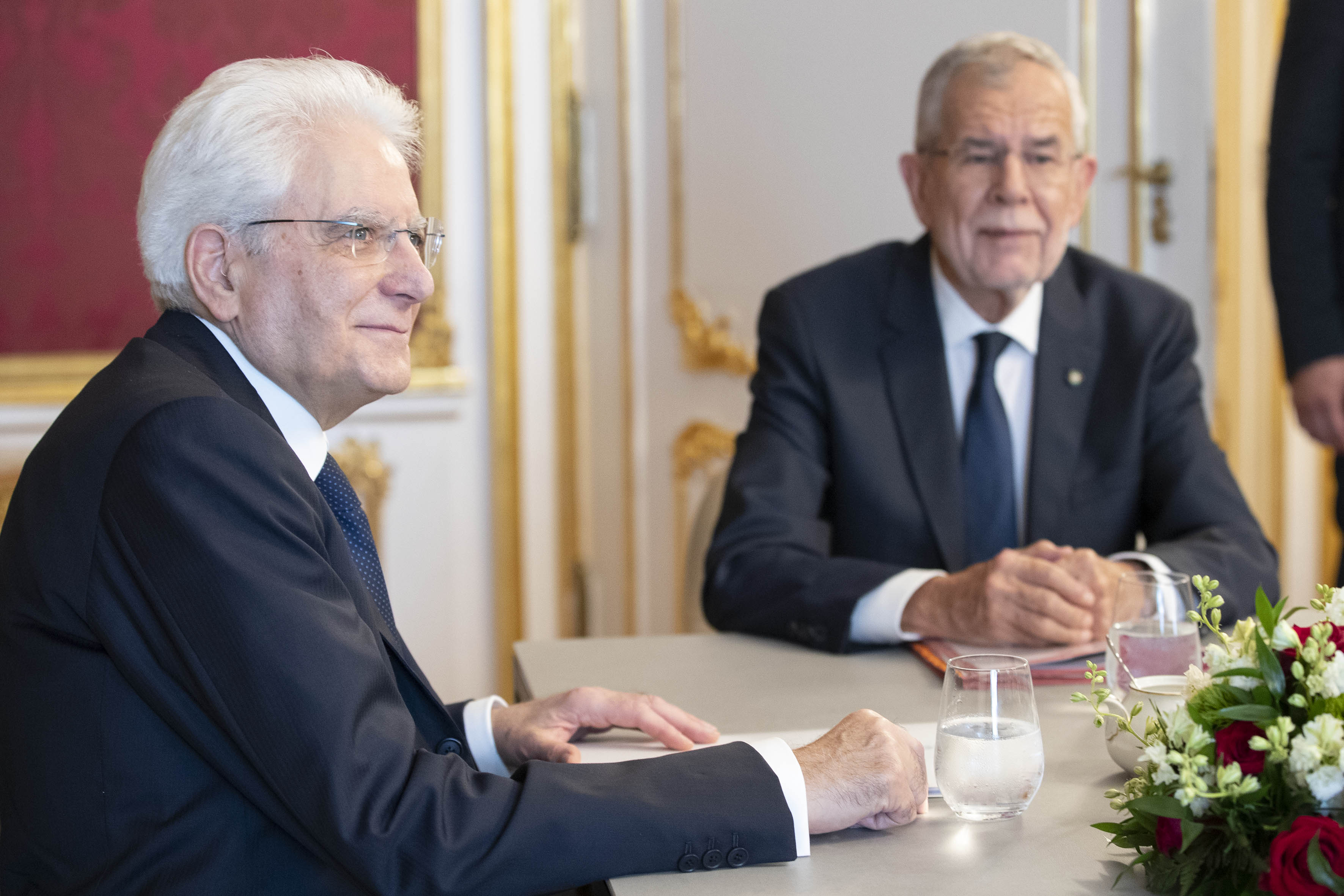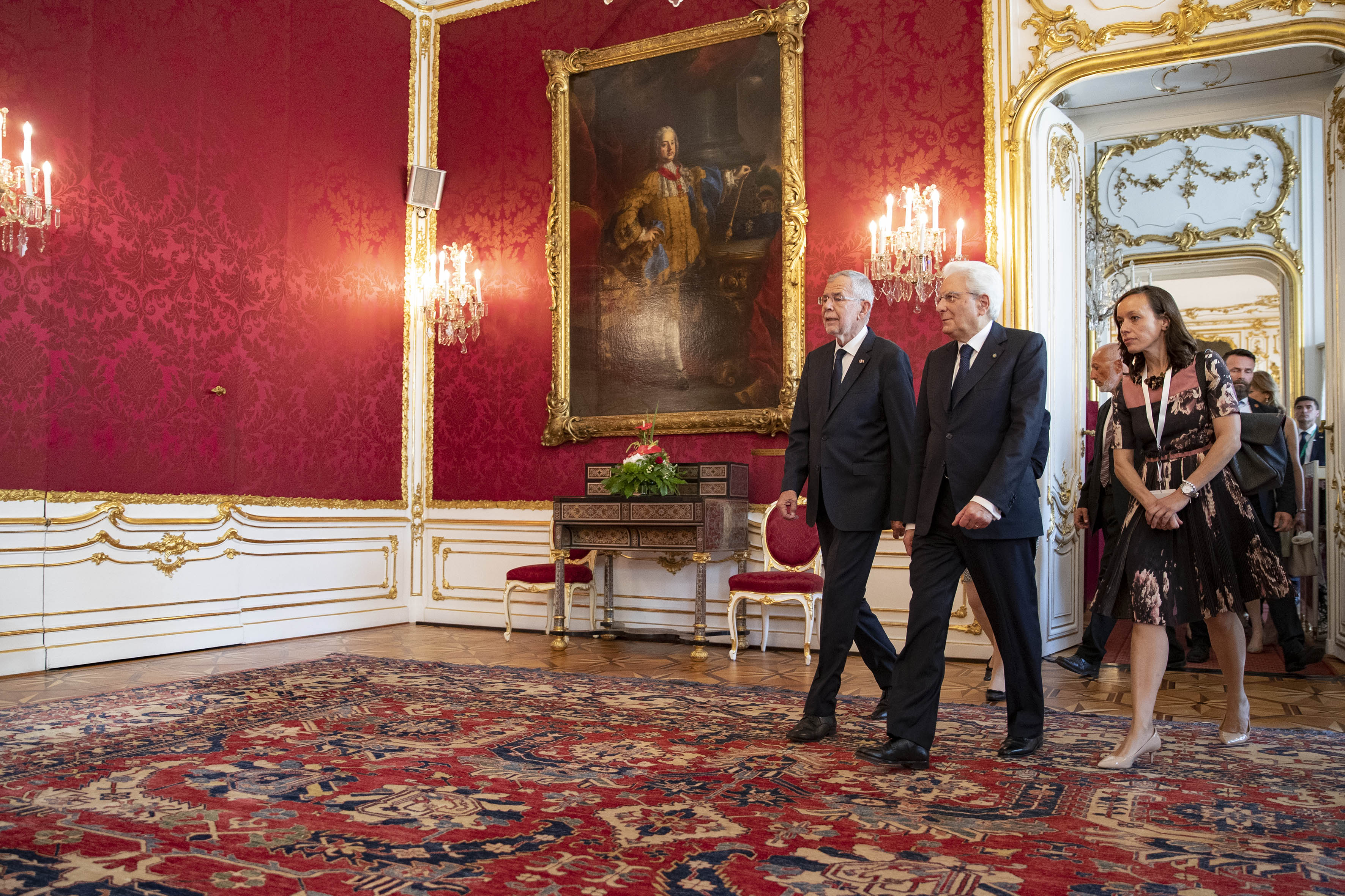 Il Presidente Sergio Mattarella con il Presidente Federale della Repubblica d'Austria Alexander Van der Bellen, durante i colloqui con le rispettive delegazioni,in occasione della visita di Stato nella Repubblica d'Austria